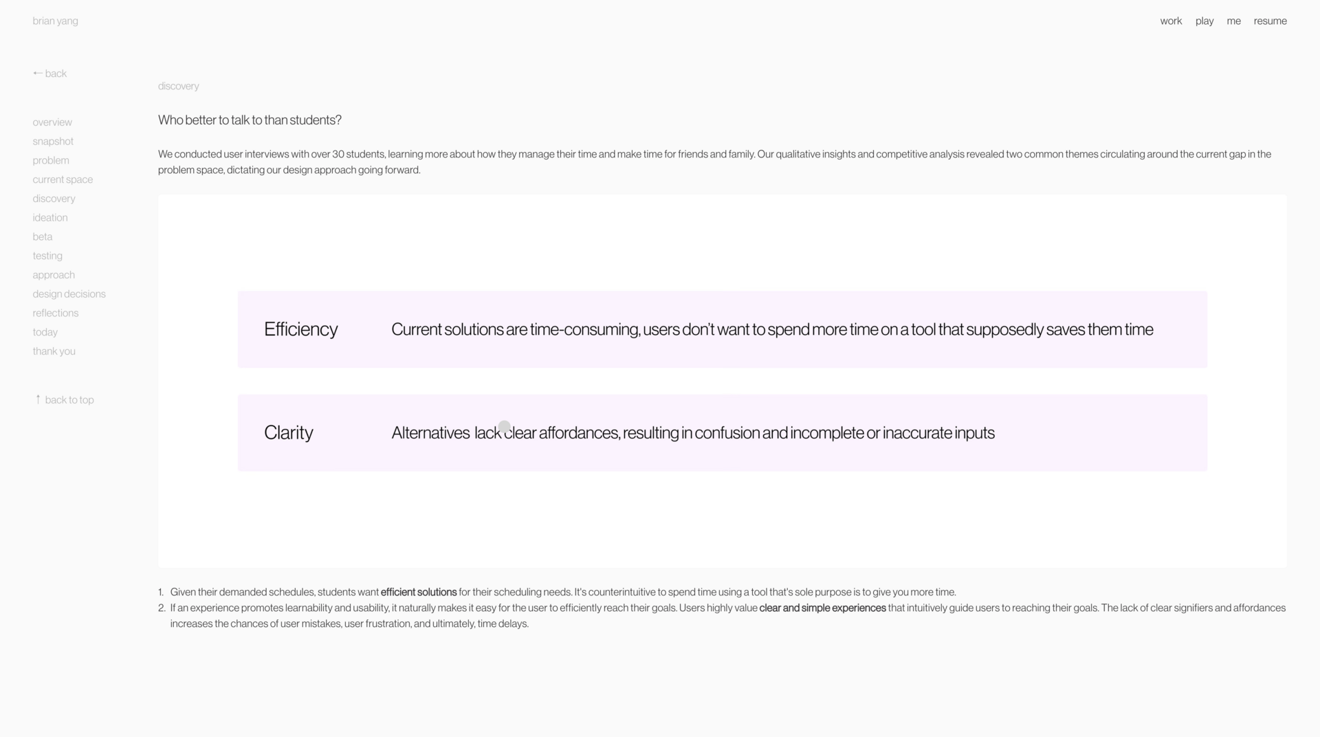 When text does appear, it’s concise and personal. Brian consistently speaks from his own perspective, clearly explaining what he did, why certain decisions were made, and how his work fit into the broader effort. That’s not something to take for granted—many early-career designers hide behind “we” and never fully articulate their individual contribution.