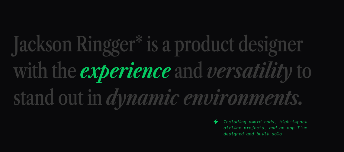 If you want to see what “ready for hire” looks like — especially for a designer blending product, visual, and interaction craft — look at Jackson Ringger’s portfolio. It’s a benchmark.