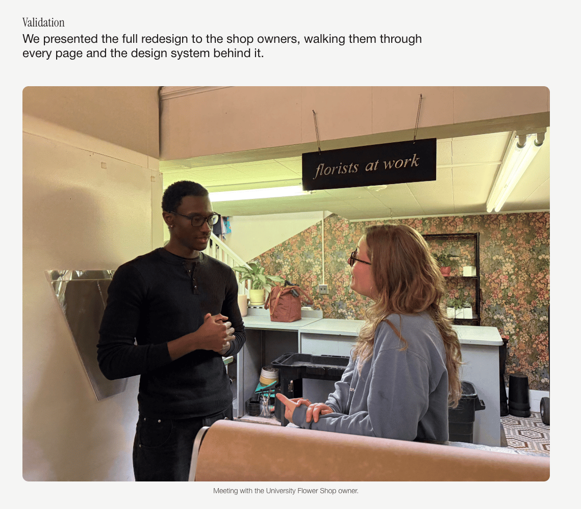 The university flower shop case study is a great example. On paper, this is not the most exciting project. A local business website is something many portfolios include, and most of the time it ends up being fairly generic.