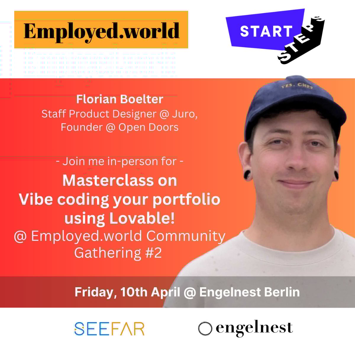 Join me for an in-person masterclass on “Vibe Coding Your Portfolio with Lovable” at Community Gathering #2 by Employed.World